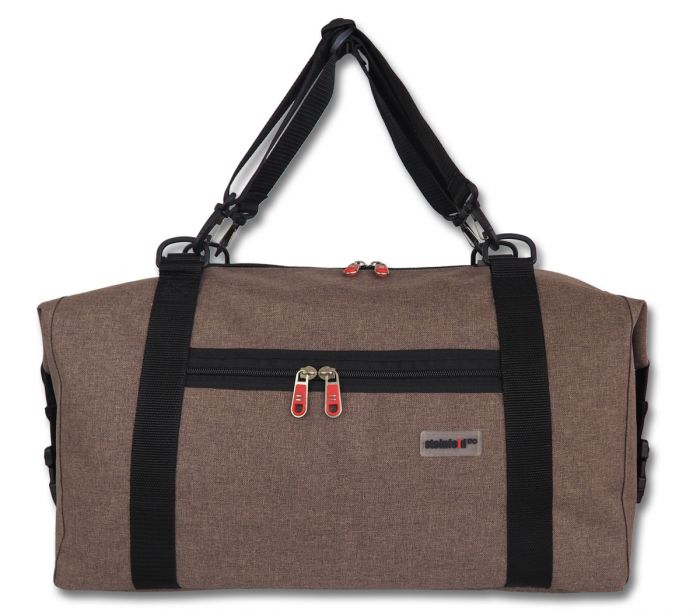 4 cm breite, längenverstellbare und abnehmbare Schultergurte, Reißverschluß- und Einsteckfach am Vorderteil, Gummifüße am Bodenteil; innen 3 große Einsteckfächer, Reißverschlußfach, Schlüsselhalter, abgefüttert
